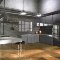 This 3D graphid design software product has been completely rebuilt from the ground up! It now includes brand new high-resolution textures, efficient 3D models for better rendering times and much more detail in all surface materials. The kitchen cabinet doors open to reveal shelving inside. The drawers slide out. The refrigerator and freezer have interior parts, too.