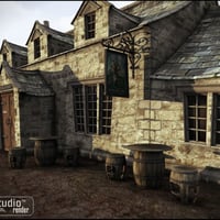 This 3D building features an exterior with separate elements including the walls, doors, windows, sign, stool and table. The modular set allows easy customization, with the included preload preset for ease of use. Note: ground plane not included.What's Included and Features