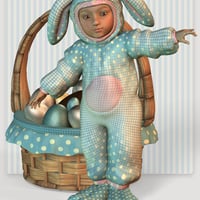 Look who's all dressed up and cute as a bunny, ready to hop into some fun with this adorable Bunny outfit! She comes with her own little basket stuffed full of chocolate eggs - perfect for spring celebrations.