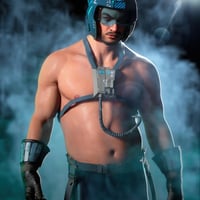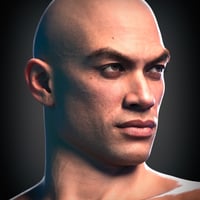 Aro comes with broad shoulders, a well-defined chest, and muscular arms and legs. While his upper body and limbs appear athletic and toned, his midsection is rounded and extended forward. He has a prominent, squared jawline with a wide, angular chin, broad, straight nose, and thick, dark custom eyebrows. He's the perfect everyman action hero, and a great, unique asset to use to blend into your other Genesis 9 figures.