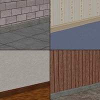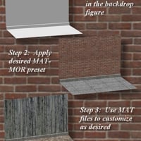 Backdrops Made Easy consists of a figure with three 'body parts': a wall, a floor, and an 'edge' that uses geometry swapping to provide eight different configurations, from a traditional baseboard to a planter border for a patio (see features list).