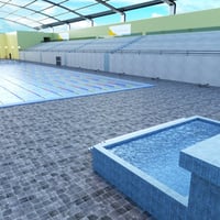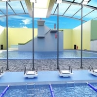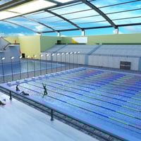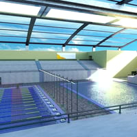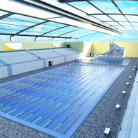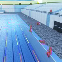 This product is a Competition Swimming Pool with 10 Pose Preset, Step Platform, Lane Divider, Light Pole, Stairbar, Bench, Door, Pool Area.