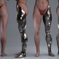 Cyber Augments Legs HD for Genesis 9 are human-machine hybrid legs with detailed plating and six finish options, including a damaged finish. Use it on either leg or both, and with or without lights.