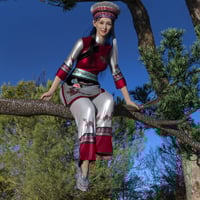 The Bai ethnic group mainly lives in Dali, located at the foot of Cangshan Mountain and on the shore of Erhai Lake in northwest Yunnan province of China. The Bai people advocate white, and their clothes use white as the base tone. The headwear of Bai girls also has the meaning of "wind, flowers, snow, and moon." The tassels represent the wind, the flower ornaments represent the flowers blooming all over the mountain, the white wool line on the cap is the snow on the top of Cangshan, and the curved shape represents the crescent moon. This is a people who have put the beauty of their hometown into their outfits. This is a beautiful, ancient, industrious, and romantic people, and the dForce Bai Outfit for Genesis 8 and 8.1 Females is based on their traditional clothing.