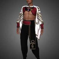 Consisting of a Necklace, Top Shawl, Belt, Pants, and Sandals, it has everything you need for your ruler of Egypt, your shaman, or your anything else.