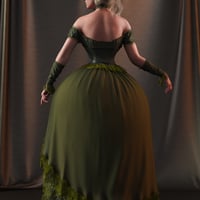 This gown is intended to be used with dForce simulation. Due to the voluminous shape of the skirt, leg posing is limited. It is not meant to be used with sitting poses.