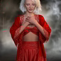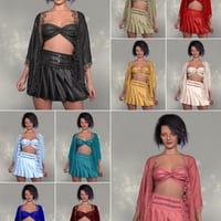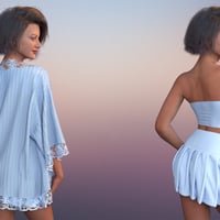 The dForce Piper Outfit for Genesis 9 is a three-piece outfit that consists out of a top, skirt with belts, and a robe with lace trims. This outfit effortlessly combines chic style and elegant details.