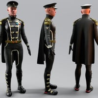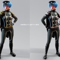 The belt and gloves complete the outfit with a refined style. The officer’s cap with emblem and gold details reinforces the character’s rank and authority. The dForce cape can be adjusted to different lengths allowing for a short or long version depending on the desired look.