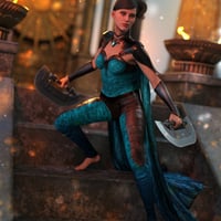 With the War Witch Wardrobe, you can create a variety of unique looks, from fierce battle-ready ensembles to magical sorceress costumes. The skirt, sleeves, and cloak are set up with individual bones for maximum flexibility, so parts of the garments can be moved and positioned before or after running a dForce simulation.