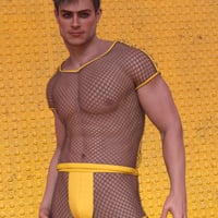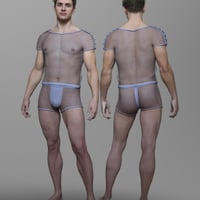 This two-piece outfit features a short-sleeve mesh shirt and matching mesh shorts with a contoured pouch brief underneath. Perfect for nightlife, fashion, or stylized character scenes, this set includes 8 color presets and comes with GenFits and adjustment morphs for a clean fit on any male character.