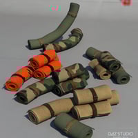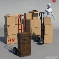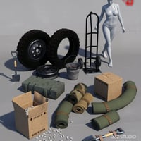 Almost everything in the set is rigged, letting you pose the cargo straps, eye hooks, and chains. Open and close the cardboard boxes, crates, and jerry cans, and spin the tires on the hand trucks. The default canvas roll can be posed to place it just like you want on whatever vehicle you choose. Premade prop combos let you quickly and easily add these details to your existing scenes, or create a brand new scene from scratch, or turn an otherwise dull vehicle into the workhorse of a traveling army.