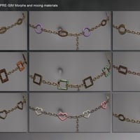 Materials come in a variety of metal colors, organized as full materials and individual shaders. Link details include my signature styles, as well as new designs that are compatible with previous sets.