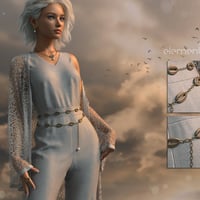 This new addition to the dForce FK Collections introduces a series of chain and geometrical figures with a loose portion of the chain, acting as a cute tail that drapes elegantly over the body or clothing with charm and sophistication. These pieces are perfect for enhancing any outfit or completing a look when worn directly on bare skin, much like LUXE BELTS from my brand.