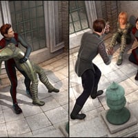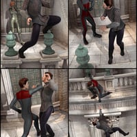 This set of twenty 3D poses for Genesis and Genesis 2 Female includes single stance, two-person and three-person vignettes. For maximum drama, use with Divinity Skies Ascension. A "go to" position pose for this building is included for ease of use. There are sets for Genesis figures and for Genesis 2 Female figures.