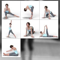 This set includes 25 carefully crafted poses and separates (upper and lower) for Genesis 8 Female that will integrate your characters into authentic exercise and stretching scenes with ease.
