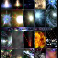 Jepe's CosmicZ is a collection of very unique and very different 2D Special Effects for your 3D rendering scenes. Especially with Outer Space scenes in mind, this time never before seen special effects like burning and turning galaxies, flaming star bursts, glittering light sheets and tunnels are included. Toony dots seems to come through time from the 60s right onto your screen. Explore alien spaces using effects like laser beam shots and beacons or simply drop a green sun in the sky. Limit is only your imagination.