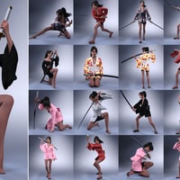 This product includes 20 Japanese swordsmanship poses. suitable for various scenarios. It includes 20 H.poses, Katana and saya with 6 material sets, 2 pairs of hand poses, 20 MK 01 Clothing dynamic morphs, and 20 LK 01 Clothing dynamic morphs.