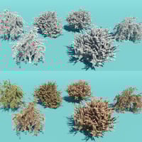 These fifteen different models ranging from small plants to large shrubs, standard and semi standard are low resolution and perfect for placing mid to far distance in your scene to give a subtle splash of color or interest.