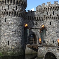 Finally, to complete the scene, a tileable 4-layer Moat Landscape is provided, with separate surface displacement for each layer and a morphable water level plane. The landscape can be tiled to extend your set, and is designed to be compatible with the Multi-Layer Landscape System for even more versatility, allowing you to add curves and corners to your moat.