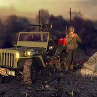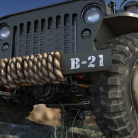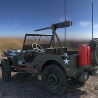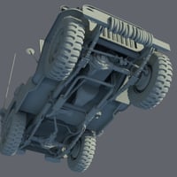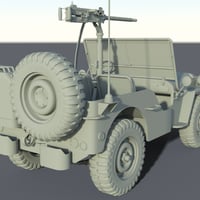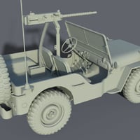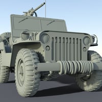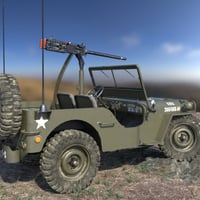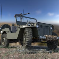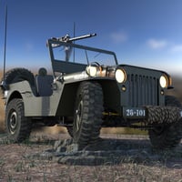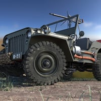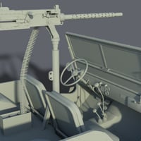 The Military GP is an authentic replica of a General Purpose Military Jeep from the World War II era. Exacting detail has been modeled into this vehicle and fully loaded with all of its Prop accessories it weighs in at approximately 108,000 polys. The undercarriage is fully complete with a functioning suspension system, steering control arms and driveshafts that react to the front and rear axle movement. The axle movement is independent of the vehicle body to provide totally accurate movement for all of your scenes. The front windshield folds down and opens up as the original General Purpose vehicle. It also comes equipped with a fully articulating .50 caliber machine gun complete with belt loaded bullets and expelled shell casings.