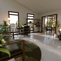 The six premade rooms vary in size and appearance. Two are large double rooms, split up by arches with large floor to ceiling windows in going up to the slanted ceiling. The other four are single rooms, ranging from darker cozy ones to a small solarium that is ready to house all your plants.