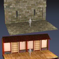 In addition to the main backdrop, there are two heroic backdrops with modeled details: a dungeon wall and an Asian wall, suitable for historic, renaissance, medieval, Asian, Japanese or Chinese themes. All backdrops have the same adjustable lights and emissive surfaces, and presets work on all three backdrops.