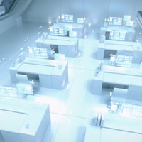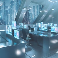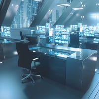 Step into a visionary workspace where form meets innovation. This Futuristic Office features an open-concept layout with sleek desks, advanced display screens, and a clean, minimalist design built for the minds shaping the future.