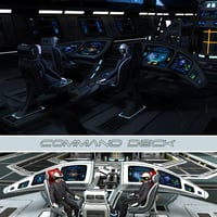 Take control of the Powerstar spaceship with the Powerstar Command deck. The PowerStar Command deck consists of the ramp, control consoles with illuminated instrument displays and fully movable chief and systems operator seats. The Powerstar Command deck can be loaded in the Powerstar spaceship or it can be loaded in your own ship or sci-fi room. The package includes sitting poses for Michael 4, Victoria 4 and the DAZ Studio 4 Genesis character.