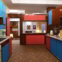 The Retro Apartment is a high-end indoor environment featuring interior styles from the last 50-60 years. This swanky living space comes with essential furniture and appliances for living your best retro lifestyle.