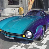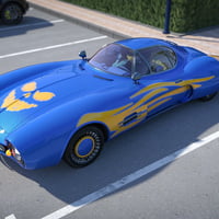 The car Fantom is a concept car in a retro-futuristic style. This is a car for two passengers, for driving with pleasure! The hull of the machine is created in a smooth wavy style.