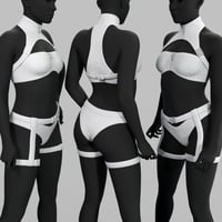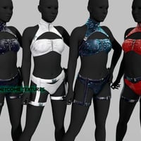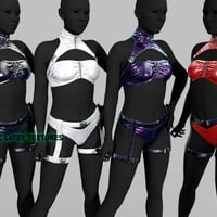 SI4 Strap Outfit for Genesis 9 is a bold and futuristic set designed to enhance your characters' aesthetics, combining science fiction with contemporary fashion. This outfit includes a chest harness, bra, panties, and thigh harness.