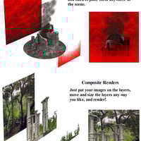 The SkySystem consists of four panels (layers) that can be individually moved and resized however you like. The SkySystem can be used by itself, or with other scenery such as the Cyclorama or the DAZ Environment. If you need more than four layers, you can add additional SkySystems-- as many as you like.