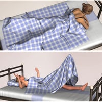 20 poses for Victoria 6 with matching props and morphs. Dial up a pose for her then do the same for the covers. The covers are sculpted around her body and fit perfectly! (Unfortunately this means that it doesn't fit Genesis 2 Female(s) other shapes so well. So make sure to use Victoria 6.
