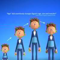 This base figure has all the built in features to change age, race, gender. Along with the add-on pack, you can create whole generations of similar style cartoon characters (See Popup Image 6 for an example of some of the possibilities).What's Included and Features