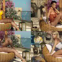There are 20 Full Body Poses with Wicker Poolside Chair for Genesis 9,8 and 8.1 Female.