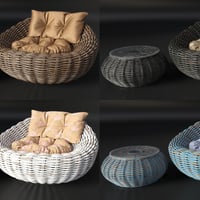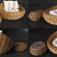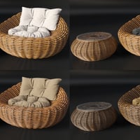 Wicker Poolside Furniture and Poses for Genesis 9, 8 and 8.1 Female has Wicker Poolside Table with glass on top and Wicker Poolside Chair with soft, plush pillows.