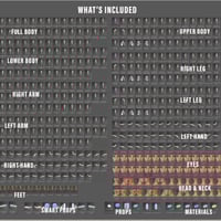 The individual poses include upper body, lower body, left arm, right arm, left leg, right leg, left hand, right hand, eye, and head pose partials that can be mixed, matched, and paired with different partials for even more possibilities.