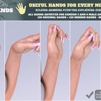 Z Every Day Poses is the ultimate Hand Collection with 30 Useful Left Hand and 30 Right Hand Poses for Genesis 3 & 8 Female and Male. You can use them with any pose and in any scenario as they are extremely versatile.