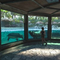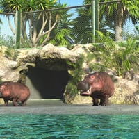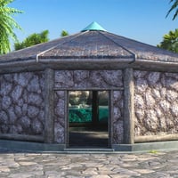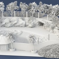 A stone concourse runs along the front edge and at the center a stone viewing hut serves as a place to observe the animals above and below water. The roof can be removed and the doors are poseable. A variety of palm trees and various foliage are planted along the borders. To get the best possible angle there are 12 camera presets. Four dramatic Sun-Sky lighting presets will give the best possible look to your renders.